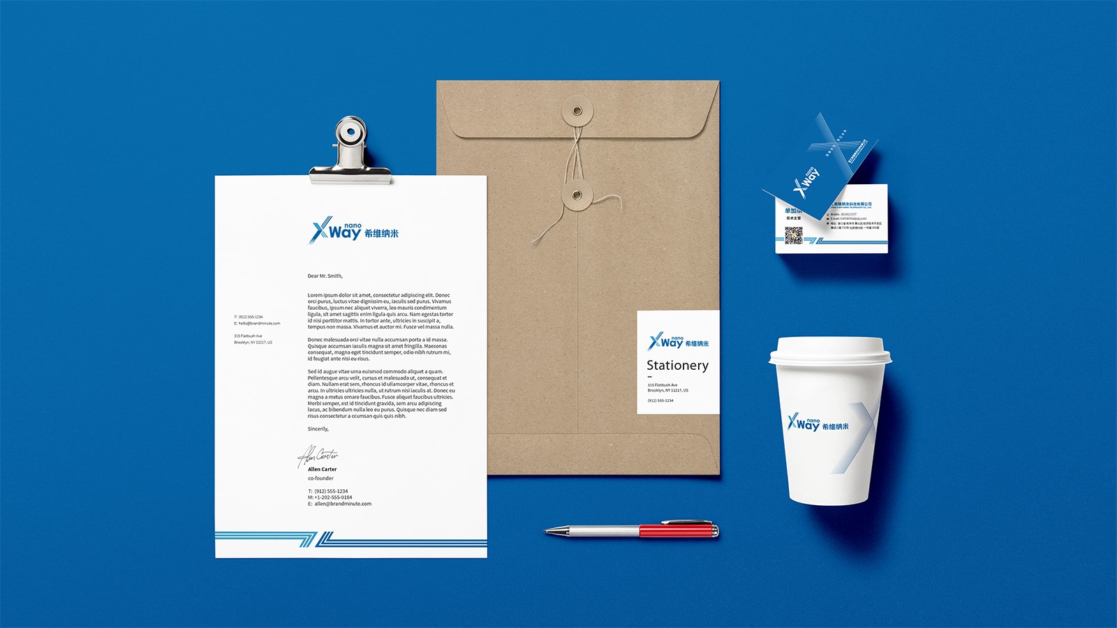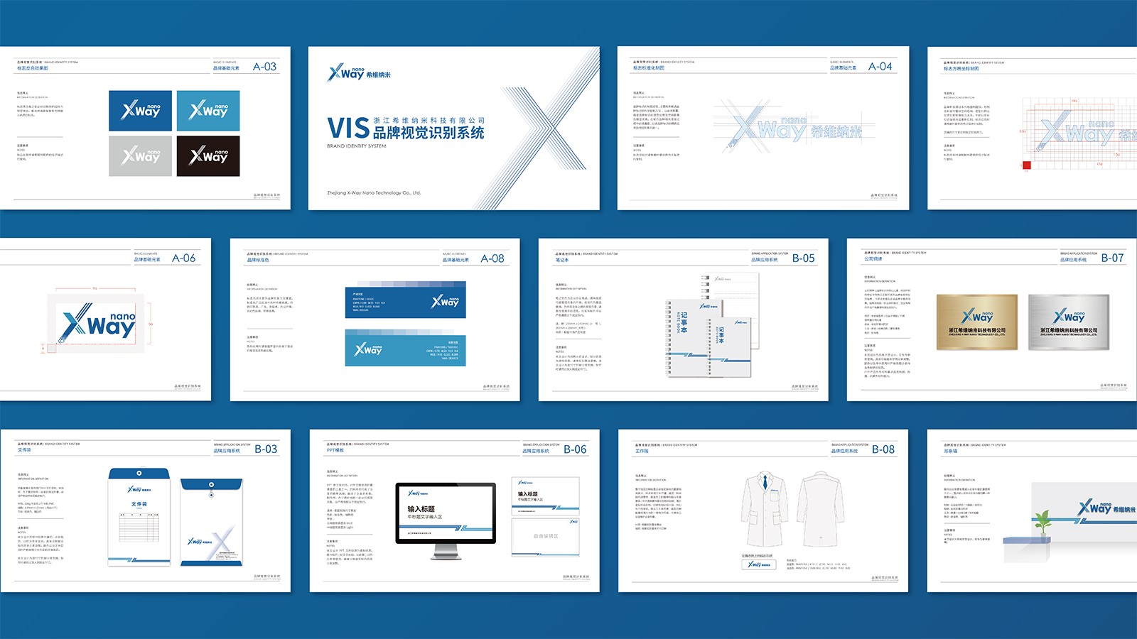 石特基于廣泛的市場調查和分析對希維納米科技進行了品牌定位分析。石特緊跟設計潮流趨勢,大膽創新,對希維納米科技的logo進行了創意設計,依據企業的行業屬性及調性,采用中英文結合的形式將“X”“Way”“Nano”巧妙結合,利用公司名稱“希維”的諧音和“X”所代表的“無限可能”以及“Nano”所代表的“納米科技”這些含義,給品牌賦予“不走尋常路,勇于探索未知的科學精神”的內涵,從而賦予企業的品牌形象與品牌價值;在配色上,選用代表科技感與未來感的藍色作為主色調進行設計,符合企業科技、創新的品牌屬性;logo整體簡潔流暢,不僅在視覺上呈現設計特有的美感,而且給予企業鮮明的生命力與活力;同時對公司VI進行系統設計與規劃,創意設計了系列宣傳物料,明確傳播路徑,注重和諧統一,凸顯了企業的整體形象且與公司理念高度吻合。該項目的成功應用,得到公司的高度認
