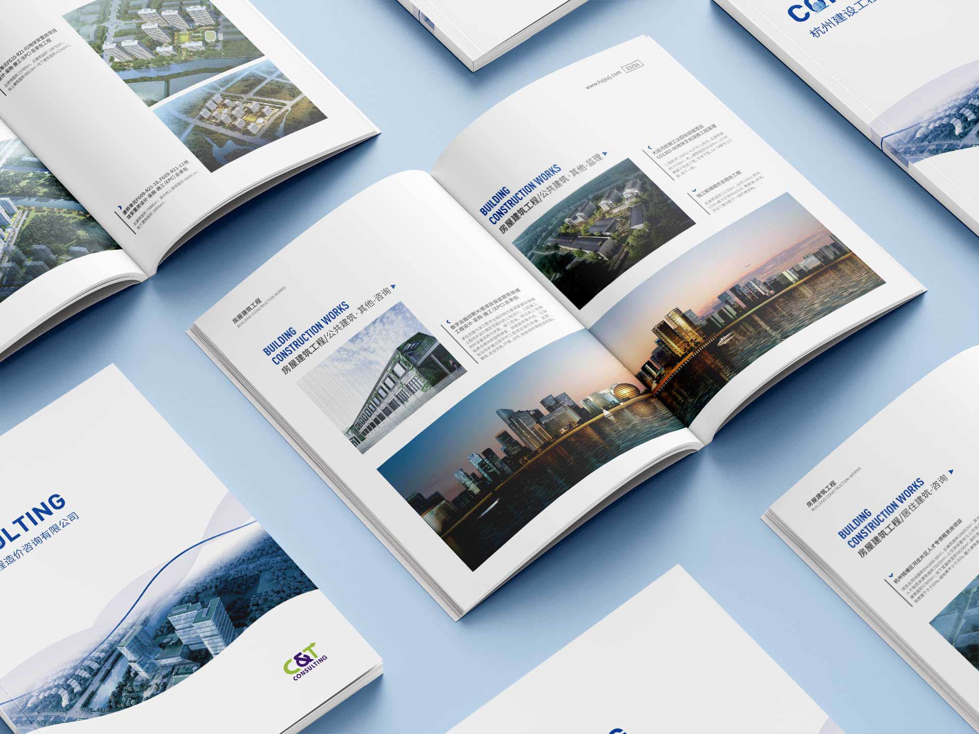 杭州建設工程造價咨詢有限公司是一家專業從事招標代理、造價咨詢、工程監理和全過程工程咨詢的綜合性工程咨詢服務企業,委托石特設計宣傳冊。我們希望通過設計,將工程造價咨詢公司的專業性、經驗和服務優勢充分展現,同時為讀者帶來清晰、直觀的閱讀體驗。