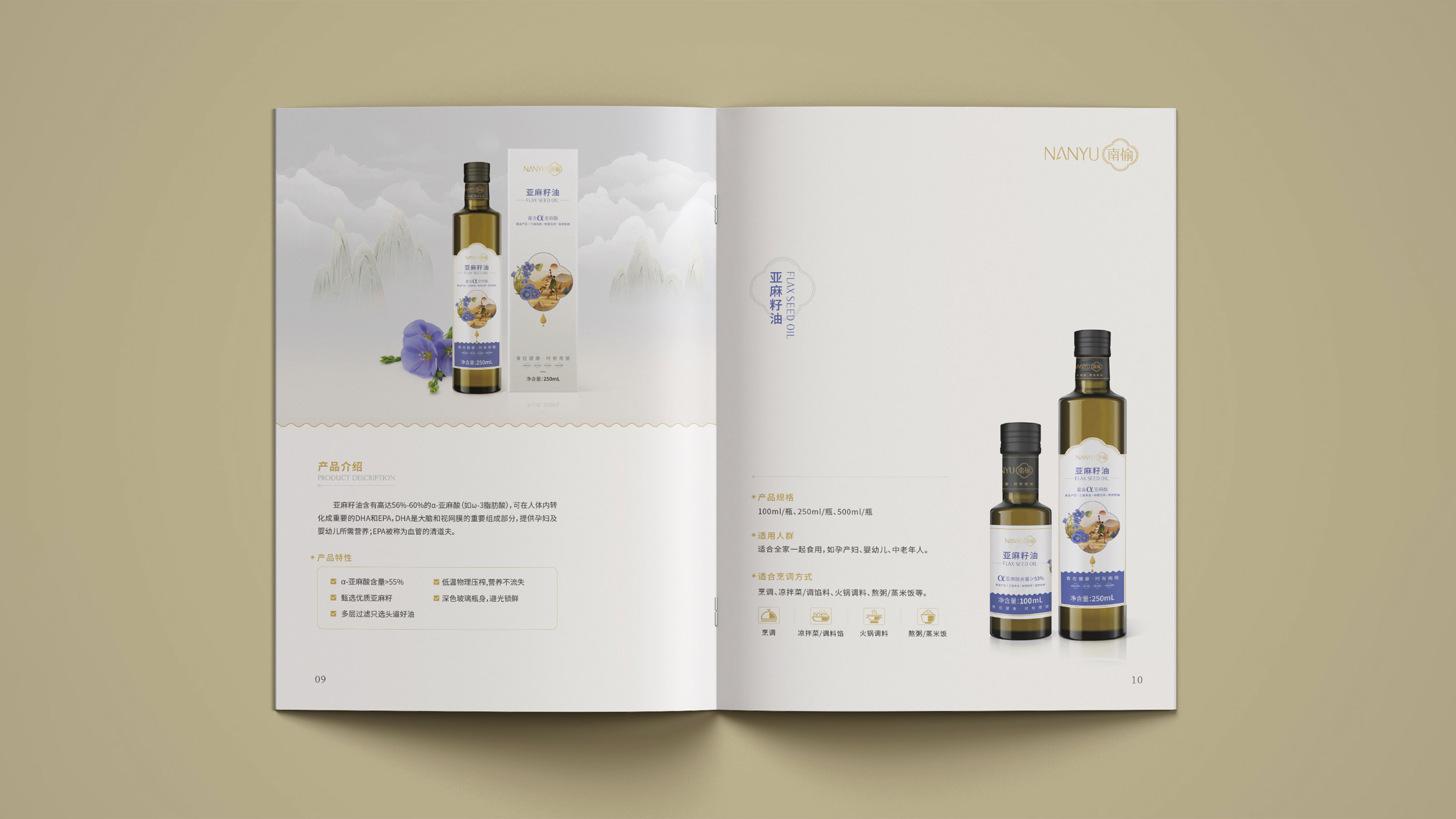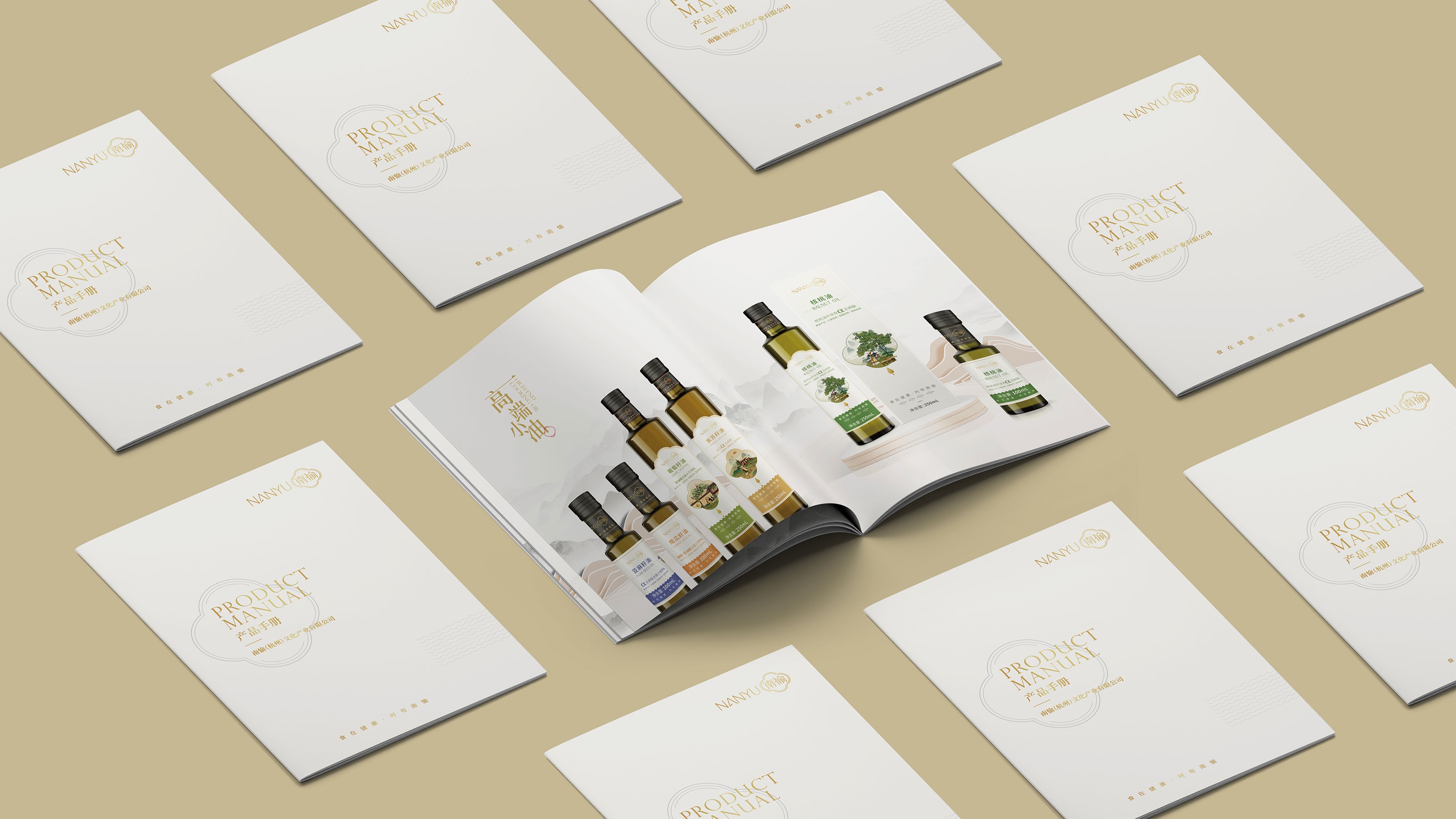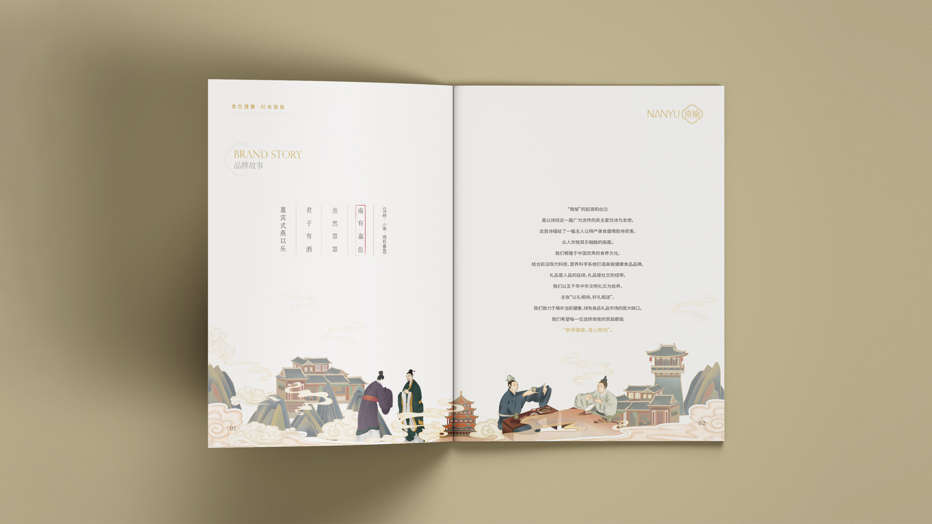 畫(huà)冊(cè)是企業(yè)及產(chǎn)品宣傳的重要表現(xiàn)形式之一,為更能夠突出展現(xiàn)南愉品牌的形象,石特進(jìn)行了深入的思考。在畫(huà)冊(cè)的設(shè)計(jì)中,石特結(jié)合南榆自身的品牌定位以及產(chǎn)品特性,決定將中國(guó)傳統(tǒng)文化融入其中。封面采用金色字體描出品牌logo和定位語(yǔ),簡(jiǎn)潔大氣,到了講品牌故事的頁(yè)面,一個(gè)原創(chuàng)手繪插畫(huà)故事進(jìn)入你的視線,令人欣喜的是,故事中人物的舉手投足之間滿是傳統(tǒng)禮儀的縮影,這與南愉的“以禮相待”非常契合,這還不夠,在后續(xù)品牌文化的闡釋以及產(chǎn)品的介紹中,傳統(tǒng)水墨作為背景點(diǎn)綴其中,無(wú)一不顯現(xiàn)傳統(tǒng)文化的獨(dú)特魅力,圖文的排版輕松自然,提升了人們對(duì)葡萄籽油、核桃油以及亞麻籽油產(chǎn)品的閱讀興趣,將“食在健康,時(shí)有南愉”體現(xiàn)的淋漓盡致。