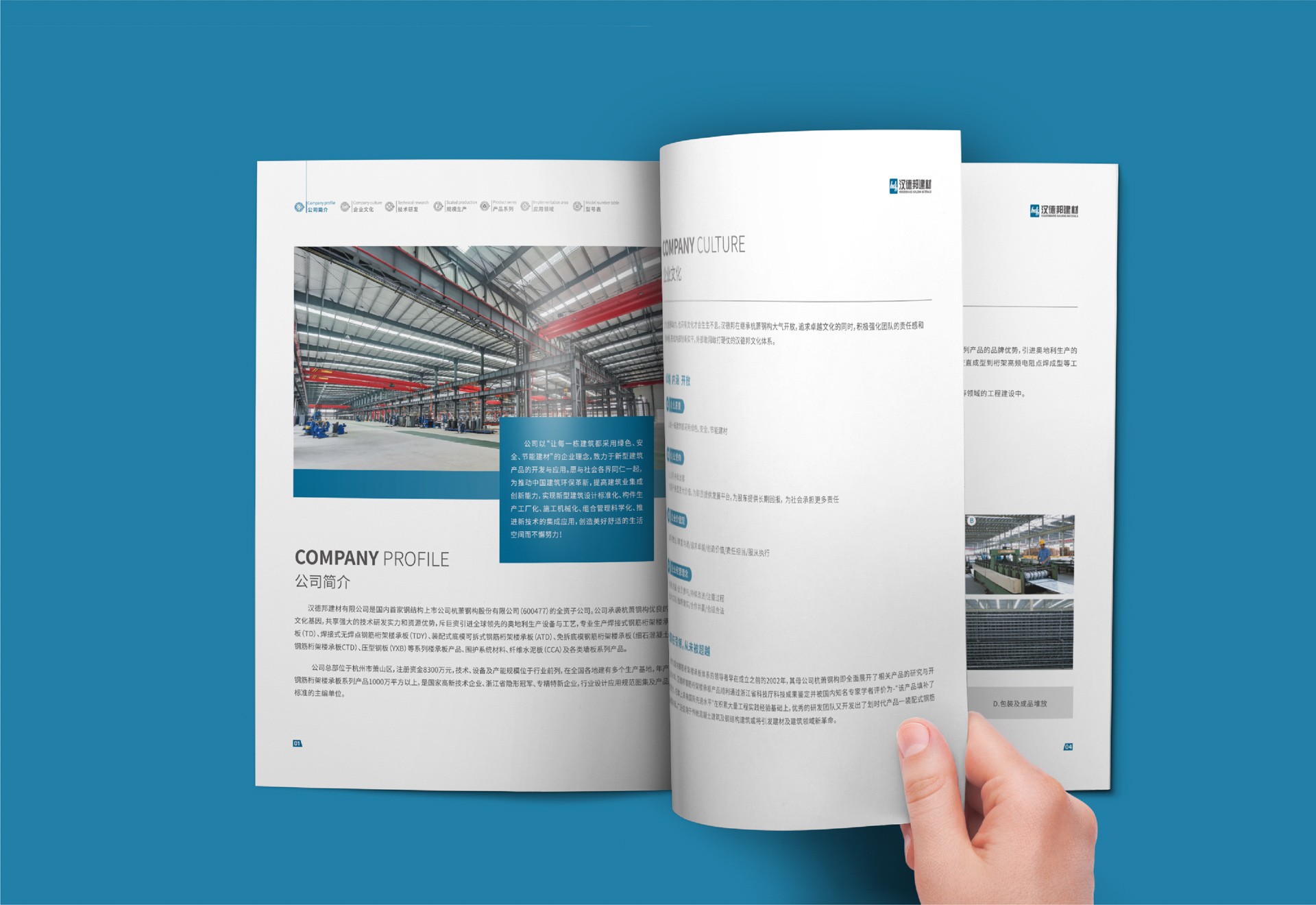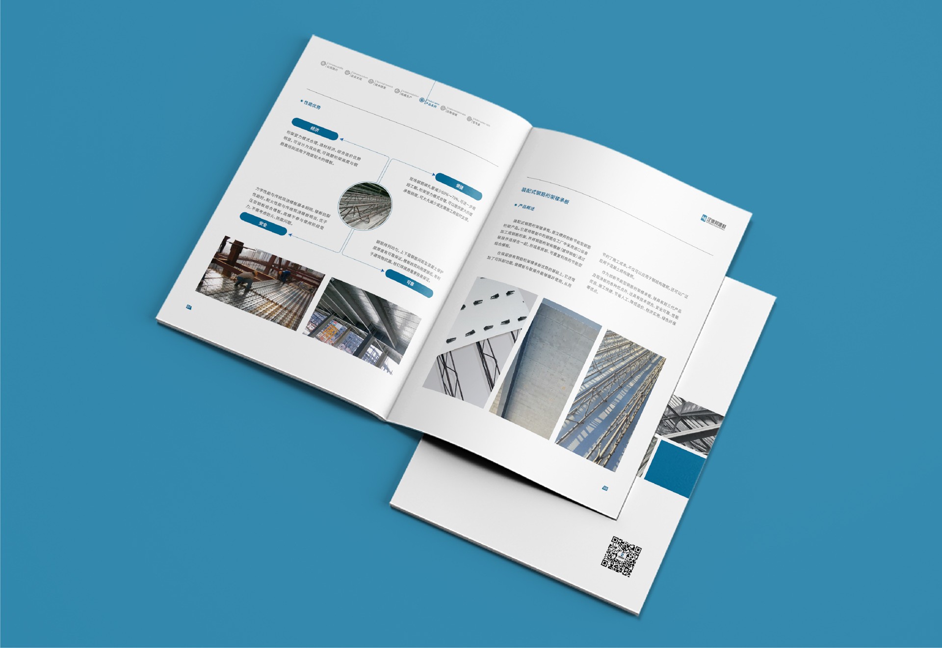 二、色彩搭配:宣傳冊整體采用沉穩的藍灰色調,象征鋼筋桁架樓承板的堅固與穩定。同時,搭配明亮的金色或銀色,用于突出關鍵信息和產品特點,提升視覺沖擊力。