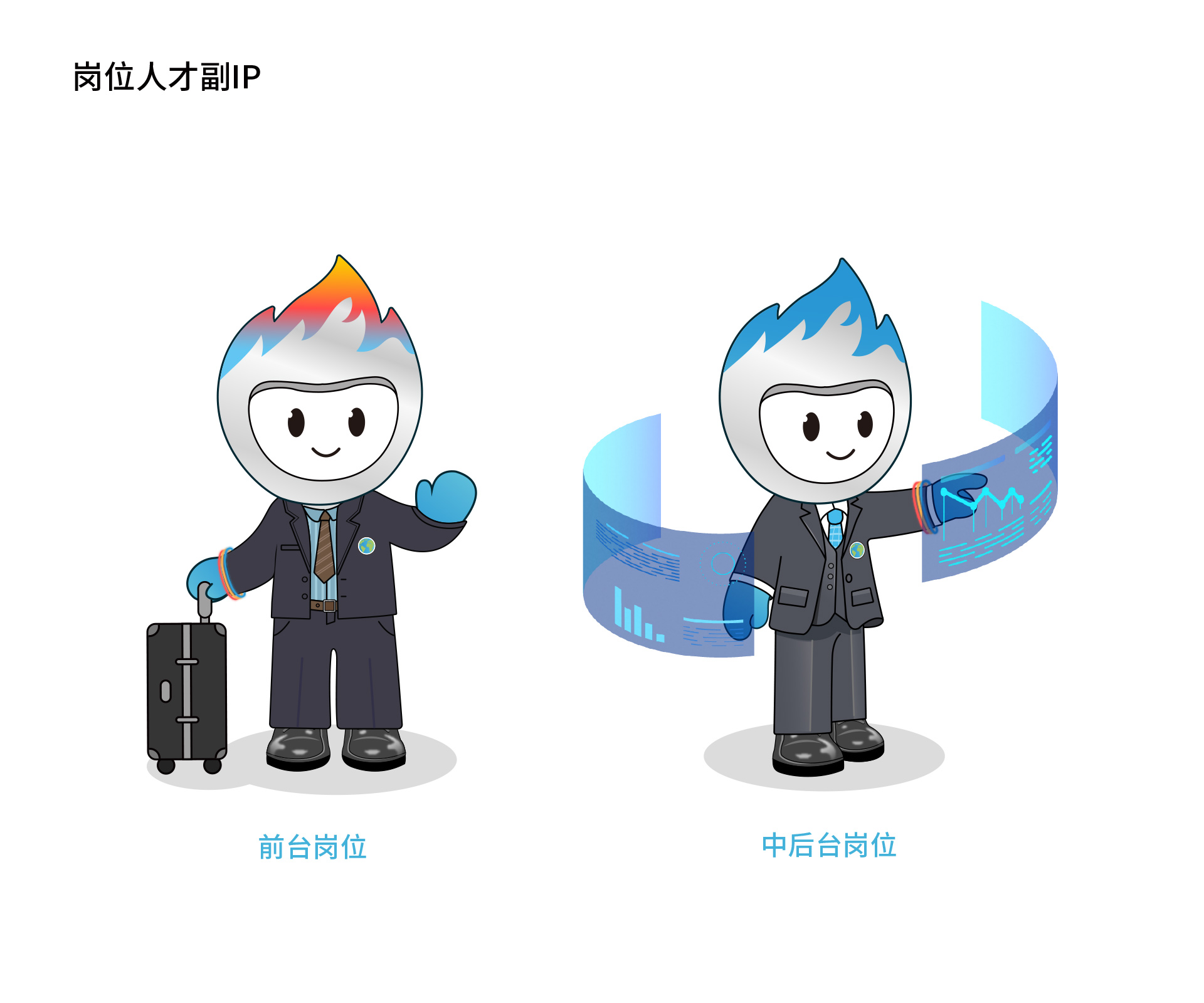 崗位副IP與功能副IP體系構(gòu)建: 基于企業(yè)的組織架構(gòu)與價值導向,我們延展設(shè)計了前臺崗位與中后臺崗位兩類崗位副IP,以及代表專業(yè)精進與全面發(fā)展的功能副IP。這一體系化的設(shè)計,使IP能夠覆蓋企業(yè)不同場景、不同層級的溝通需求,極大提升了IP的應用廣度與文化承載力。