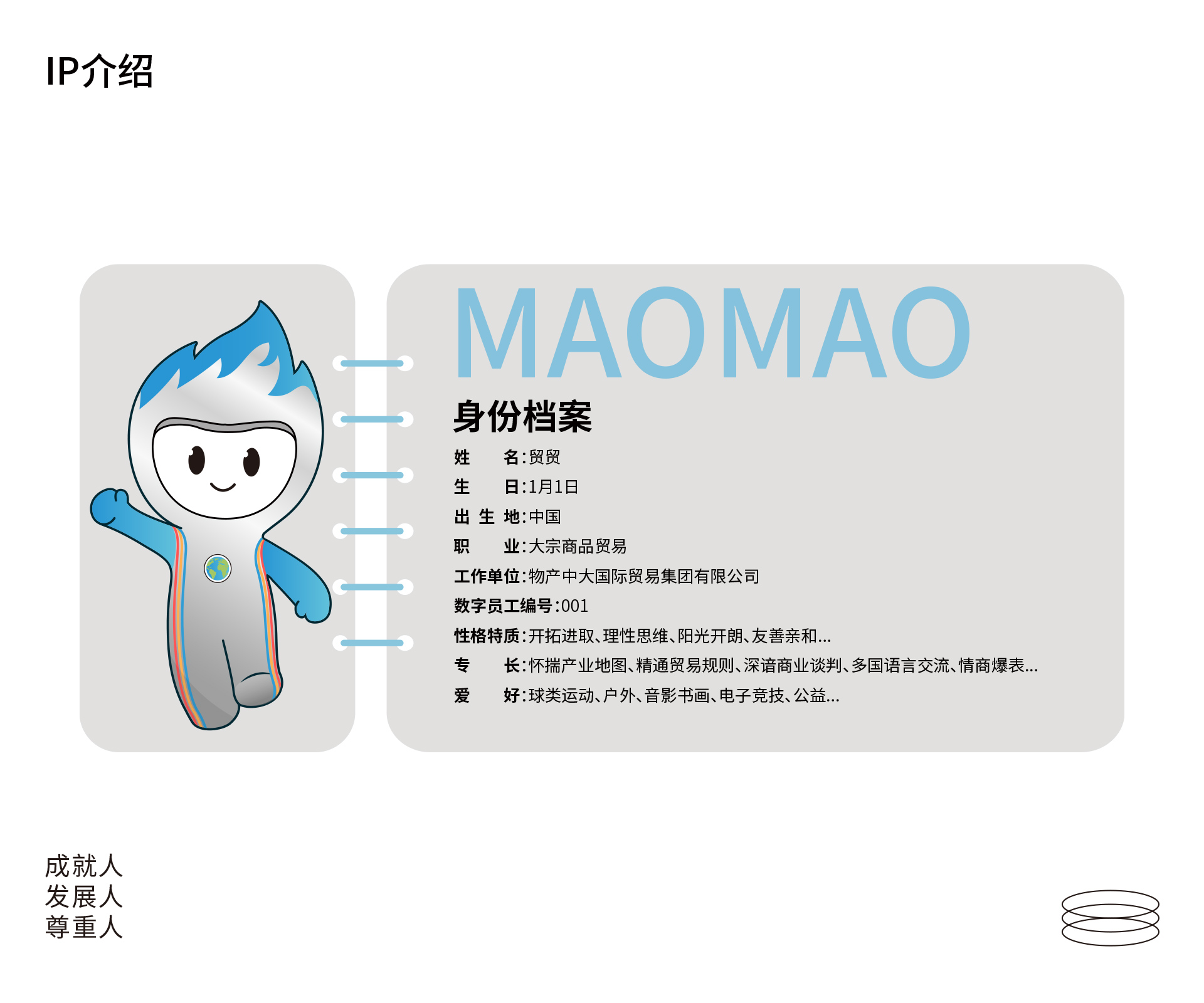 主IP“貿(mào)貿(mào)”形象塑造: 設(shè)計出名為“貿(mào)貿(mào)”的主IP形象,賦予其完整的身份檔案——1月1日生日、數(shù)字員工編號001、精通貿(mào)易規(guī)則與多國語言等細節(jié)設(shè)定,使形象真實可感。視覺上采用親和、現(xiàn)代的造型語言,傳遞出專業(yè)可靠又不失活力的品牌氣質(zhì)。