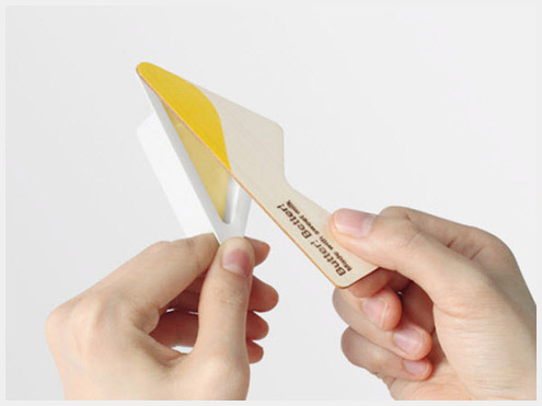 這個包裝設想處理了四處找勺子來取黃油的問題。