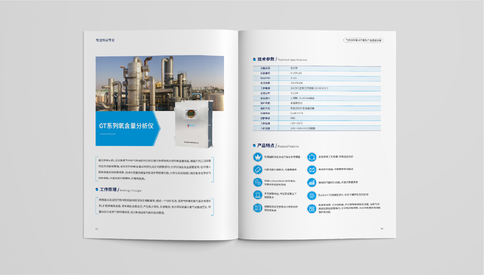 2、宣傳冊(cè)的封面選用了一張高清晰度的企業(yè)產(chǎn)品圖片,展現(xiàn)了泰仲科技所提供的氣體分析設(shè)備和服務(wù),封面簡(jiǎn)潔明了。