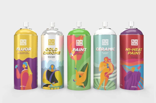 這款噴漆包裝以簡單而新潮的現(xiàn)代圖形風(fēng)格重新創(chuàng)造了眾所周知的名畫角色,以當(dāng)代年輕人個性張揚的手法對永恒的名畫進行了全新的詮釋,是一款具有自己獨特理念和風(fēng)格的噴漆包裝設(shè)計。