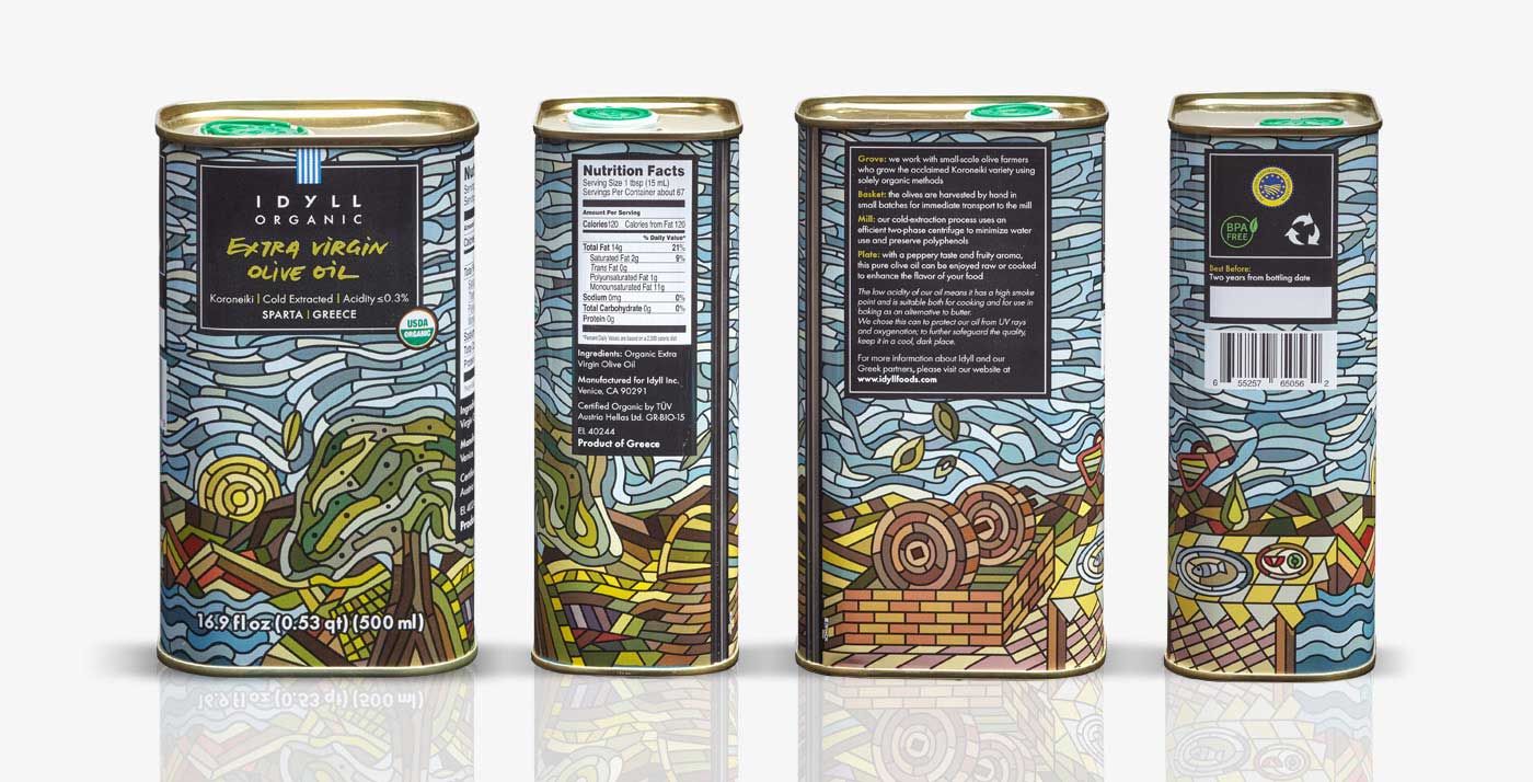 隨著社會工作的壓力增大,以及城市社會經(jīng)濟的高速運轉(zhuǎn),城市的人越來越渴望能夠得到一份田園的安寧。我們基于這樣的市場需求,設(shè)計了一款田園插畫風格的橄欖油包裝,以求給予人們心理的慰藉,達到情感的共鳴。從遠遠的看過去,完全脫離了傳統(tǒng)的 橄欖油包裝設(shè)計,應(yīng)該說是脫離了你對包裝設(shè)計的認知。對,他就是一幅畫面,一份抽象的作品,這樣的商品,會有人不喜歡嗎?