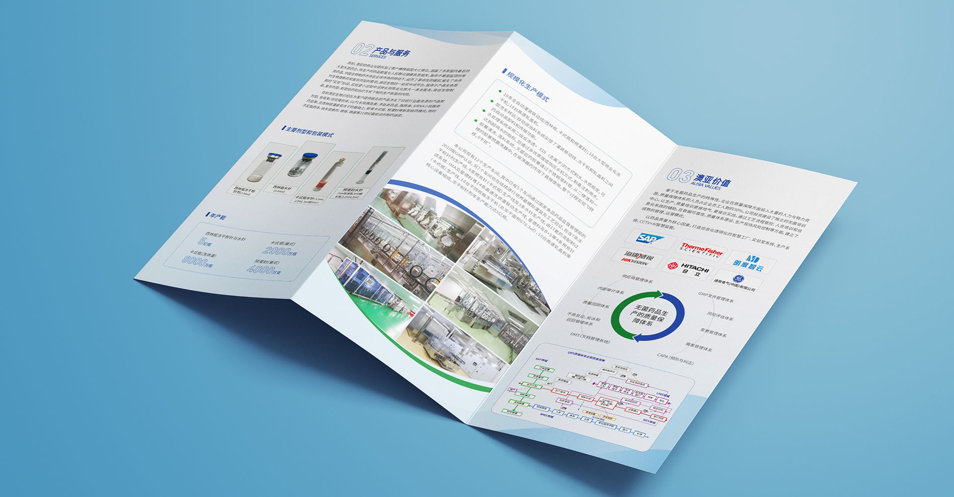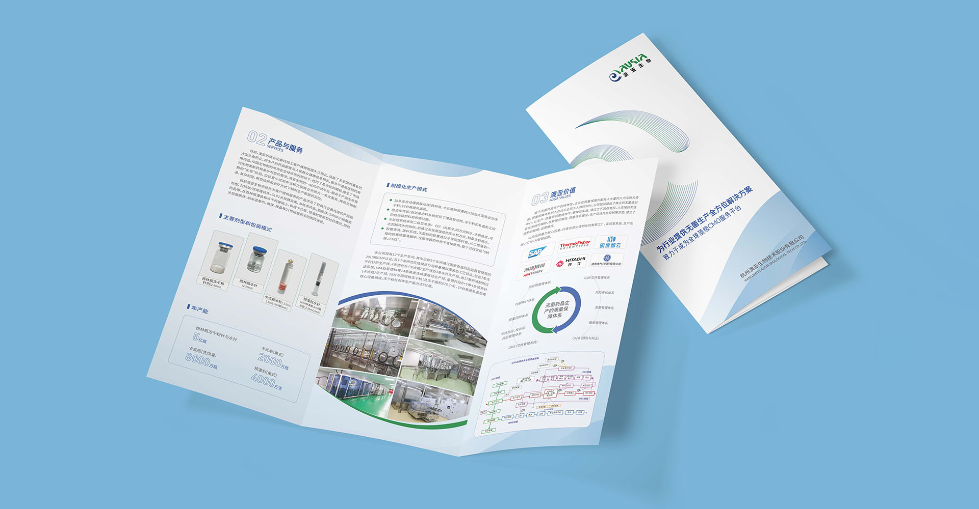 在澳亞生物科技的宣傳折頁(yè)設(shè)計(jì)中,我們以企業(yè)標(biāo)志為核心,進(jìn)行了富有創(chuàng)意的藝術(shù)化演變。這一設(shè)計(jì)旨在形成簡(jiǎn)潔、大氣的圖形,具有強(qiáng)烈的視覺(jué)沖擊力。公司基本情況、產(chǎn)品與服務(wù)、優(yōu)勢(shì)實(shí)力進(jìn)行詳細(xì)展示,內(nèi)容豐富可讀性強(qiáng),與“無(wú)菌生產(chǎn)的全方位解決方案提供者”定位語(yǔ)契合。選擇了藍(lán)色為主調(diào),有助于傳遞專(zhuān)業(yè)、科技、穩(wěn)重的品牌形象,還能夠給人帶來(lái)信任和安全感。通過(guò)文字的排版和圖形的搭配,整個(gè)折頁(yè)設(shè)計(jì)簡(jiǎn)潔而不失層次感,內(nèi)容豐富且可讀性強(qiáng),符合澳亞生物科技的品牌定位和傳播需求。