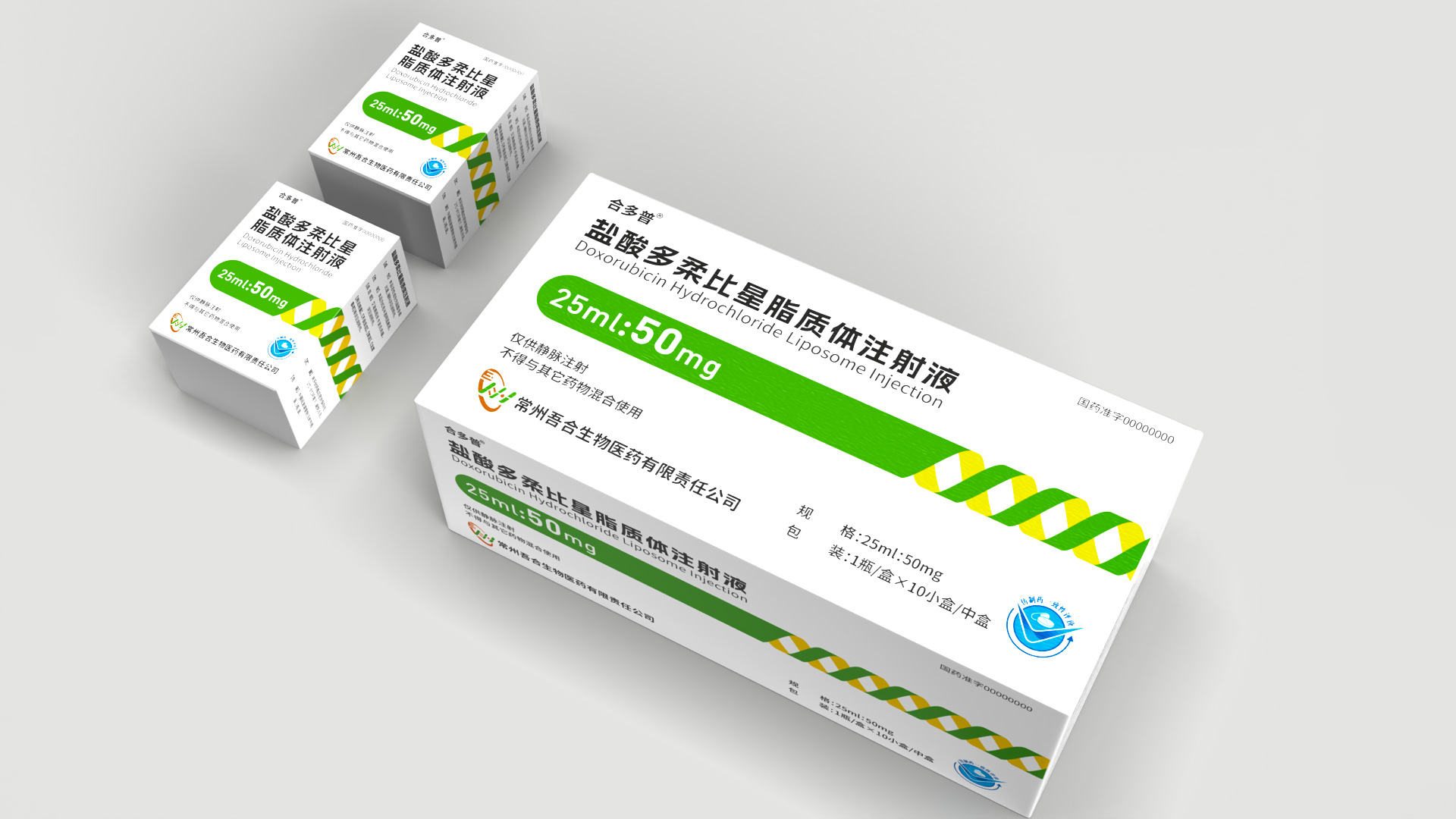 2.“鹽酸多柔比星脂質體注射液”產品包裝設計:10ml和25ml兩個規格產品各1套, 內容包含:說明書,瓶貼標簽,小盒,中盒,大盒。