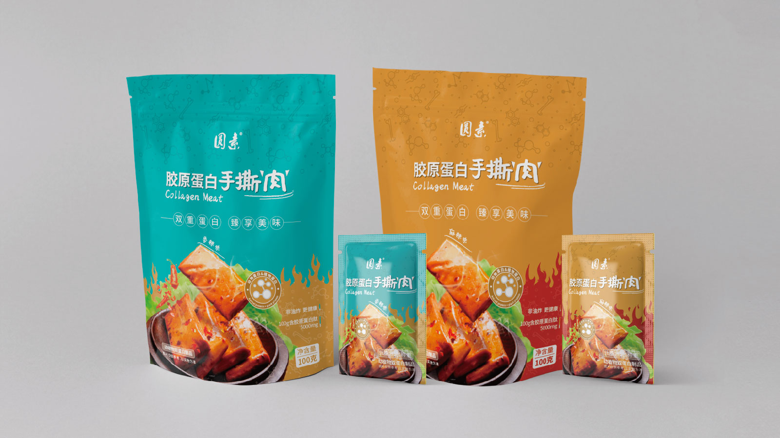 “圓素”牌膠原蛋白手撕肉本次共有4個品類全新上市,為非油炸食品,富含動植物雙重蛋白,每100g含膠原蛋白肽5000mg,該產(chǎn)品可適應人們對現(xiàn)代飲食變化和膳食營養(yǎng)健康的需求。