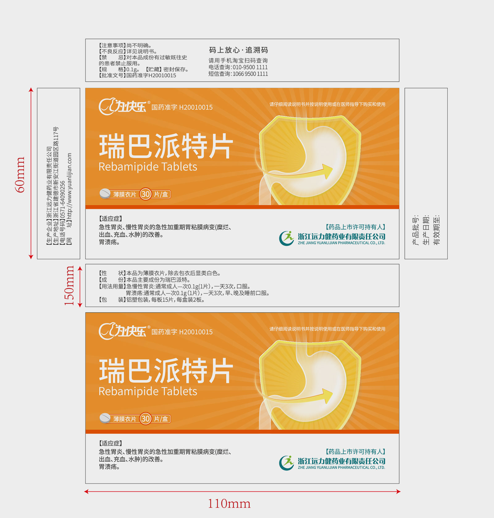 遠力健藥業瑞巴派特片藥品包裝設計