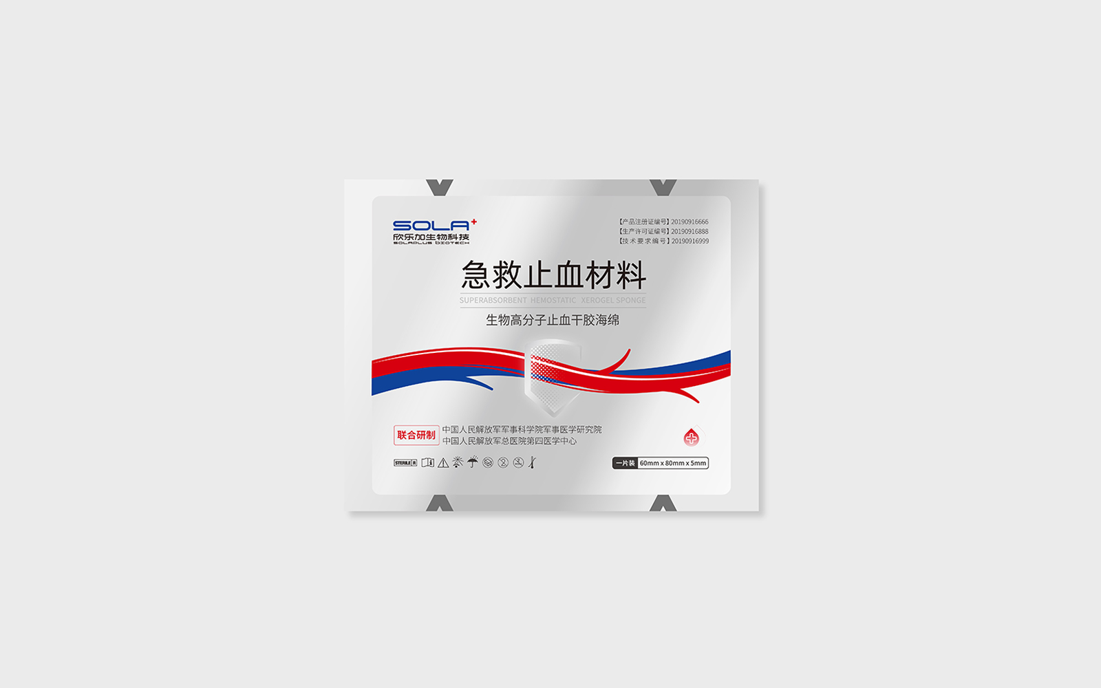 公司研發的“生物高分子止血干膠海綿”擁有完全自主知識產權,通過實驗對比與專家論證,該材料止血迅速、效果穩定、操作簡單,易攜帶、易存放、易清理,安全且無殘留、無產熱、無致敏等副作用,適用于自救互救,綜合性能指標優于美軍、英軍等裝備產品。