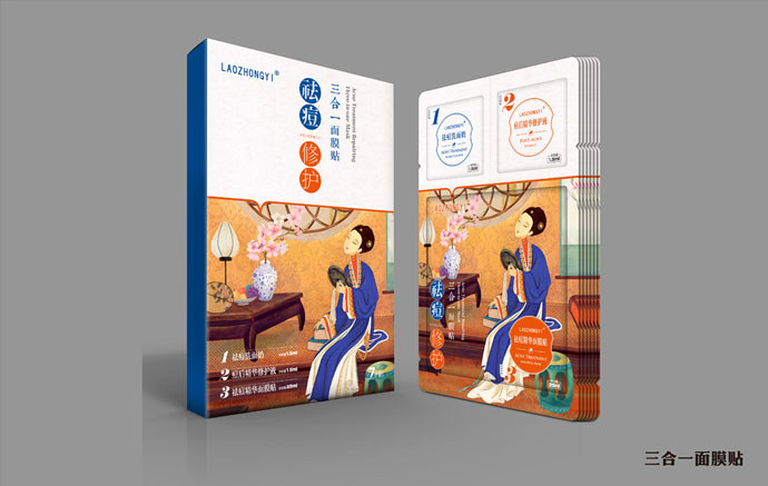 祛痘兩個(gè)字放的位置比較明顯,這樣既闡述了產(chǎn)品的功能又很快的吸引了顧客的眼球,旁邊加以小子輔助說明了產(chǎn)品的具體特性,將祛痘的功能表現(xiàn)了出來。愛美之心人皆有之,包裝盒上是一個(gè)古代女子坐在閨房內(nèi)照鏡子,給人一種古典美。宮廷多秘方,以古代美人為畫面可以使人聯(lián)想更多。祛痘洗面奶、祛痘修護(hù)液、祛痘修護(hù)霜瓶子材料包裝設(shè)計(jì)上采用瓷感白,給人一種白凈清爽的感覺仿佛如美人的臉一樣白皙干凈,同時(shí)瓶子設(shè)計(jì)的很精致給人一種高貴典雅的美感。