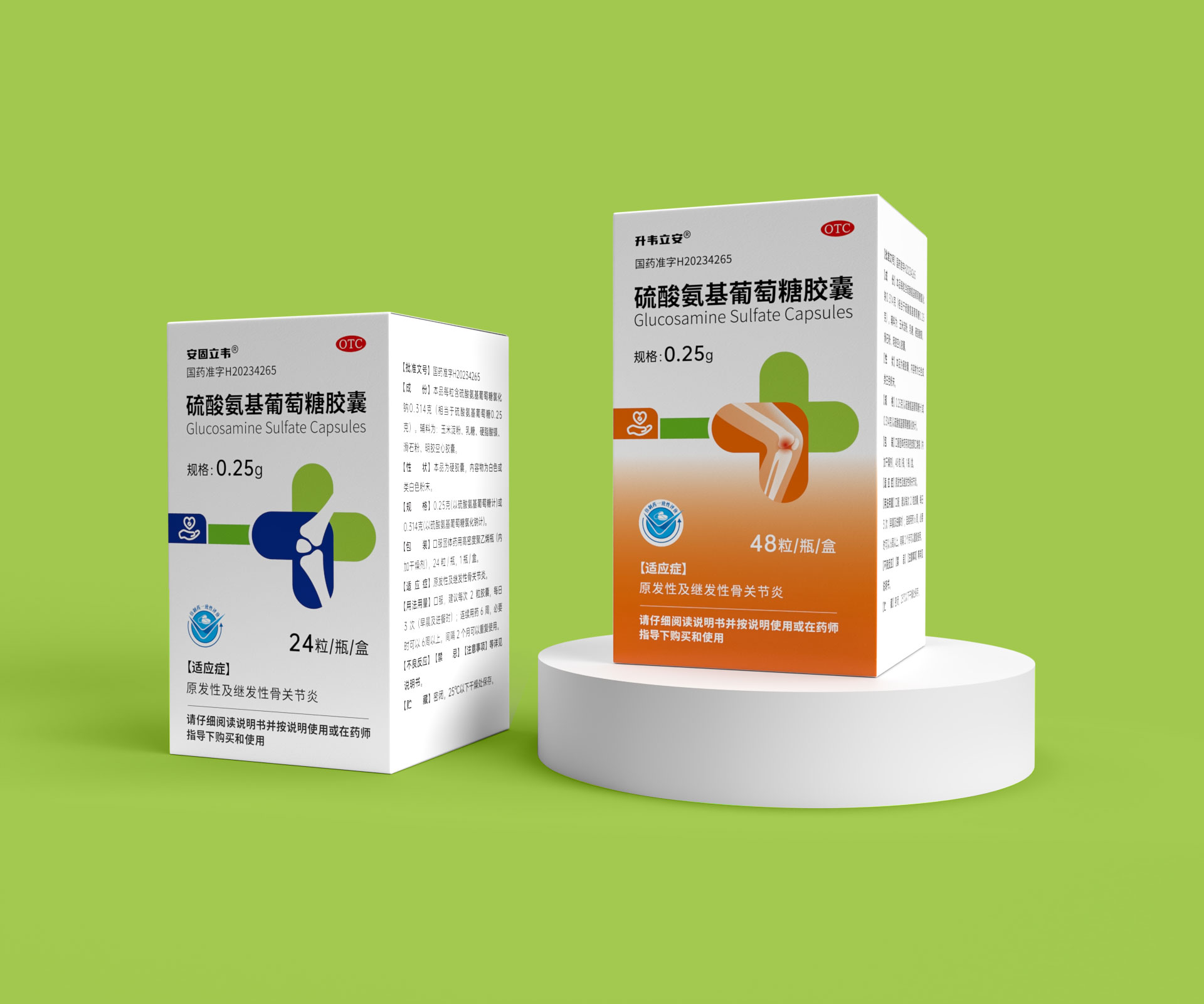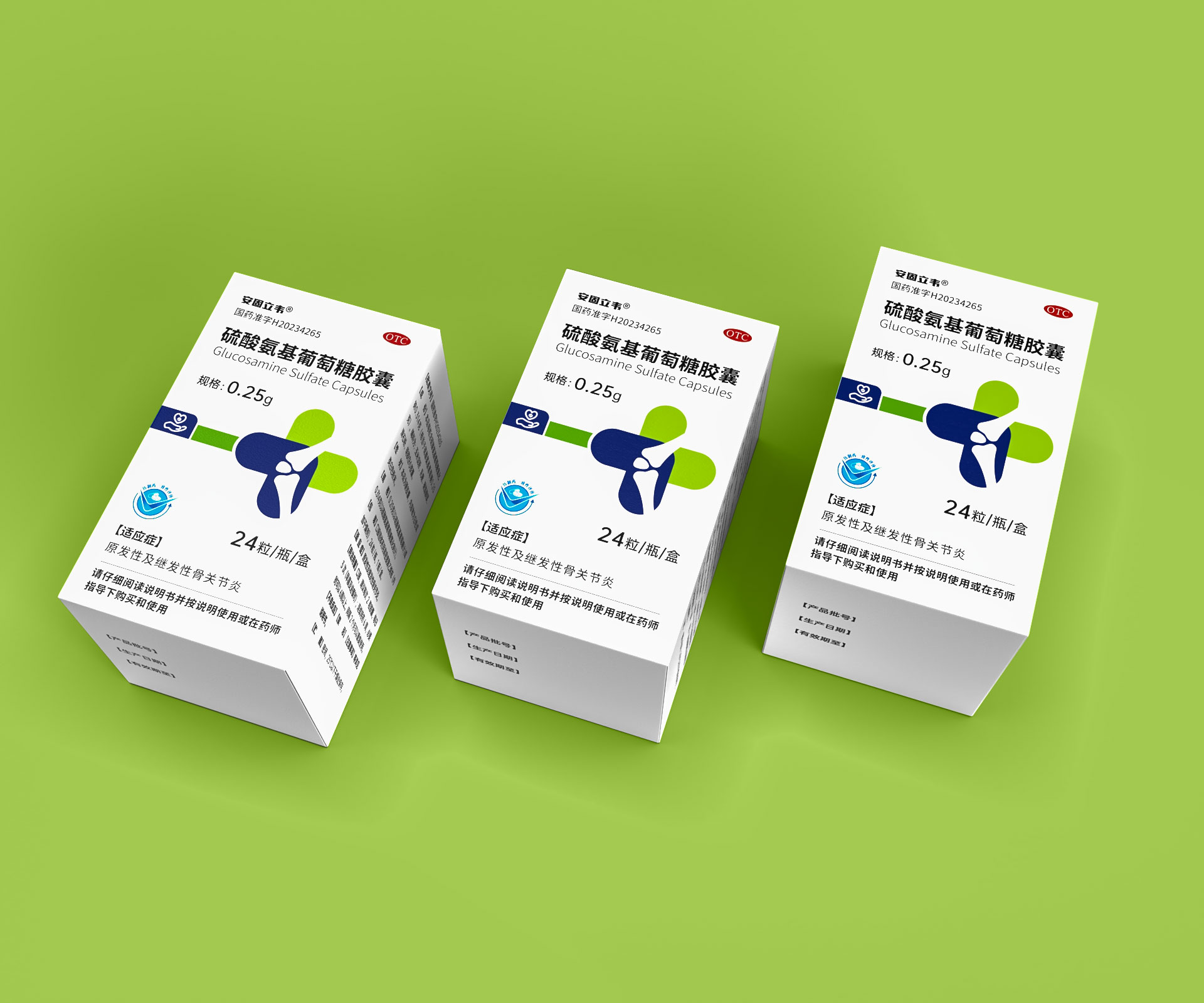 當硫酸氨基葡萄糖膠囊、西洛他唑片等系列產品陳列于藥店時,統一的色彩基因、符號系統形成 **“安星醫藥專區”** 視覺沖擊,區別于競品零散布局,提升品牌貨架辨識度,助力藥師推薦、患者選購。