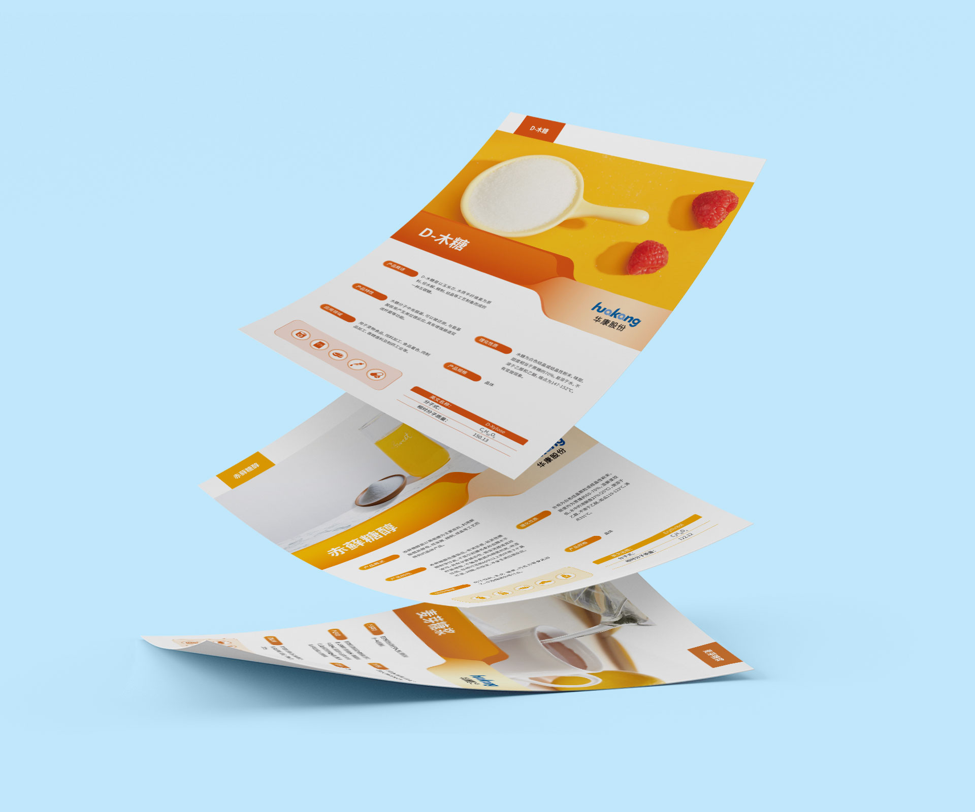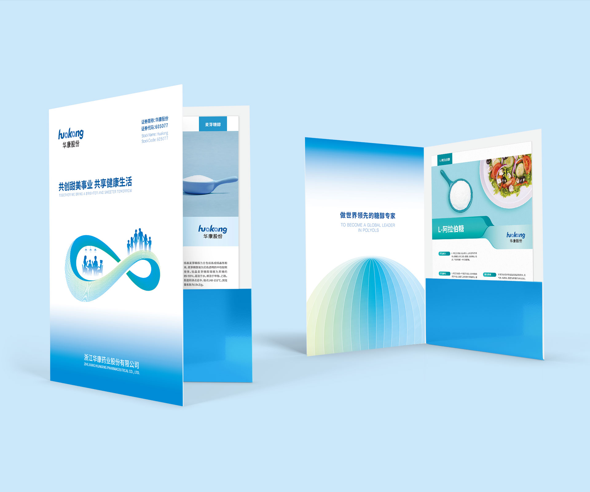 浙江華康藥業作為深耕功能性糖醇領域的國家高新技術企業,以 “做世界領先的糖醇專家” 為愿景,產品覆蓋木糖醇、麥芽糖醇等多種健康配料。此次需求聚焦宣傳物料升級,期望通過封套與單頁設計,實現三大目標:一是精準傳遞品牌價值,強化 “健康糖醇專家” 的市場定位;二是凸顯產品優勢,清晰展現功能性糖醇的應用場景與核心價值;三是適配多元場景,滿足商務洽談、展會推廣、終端營銷等不同場合的品牌傳播需求。