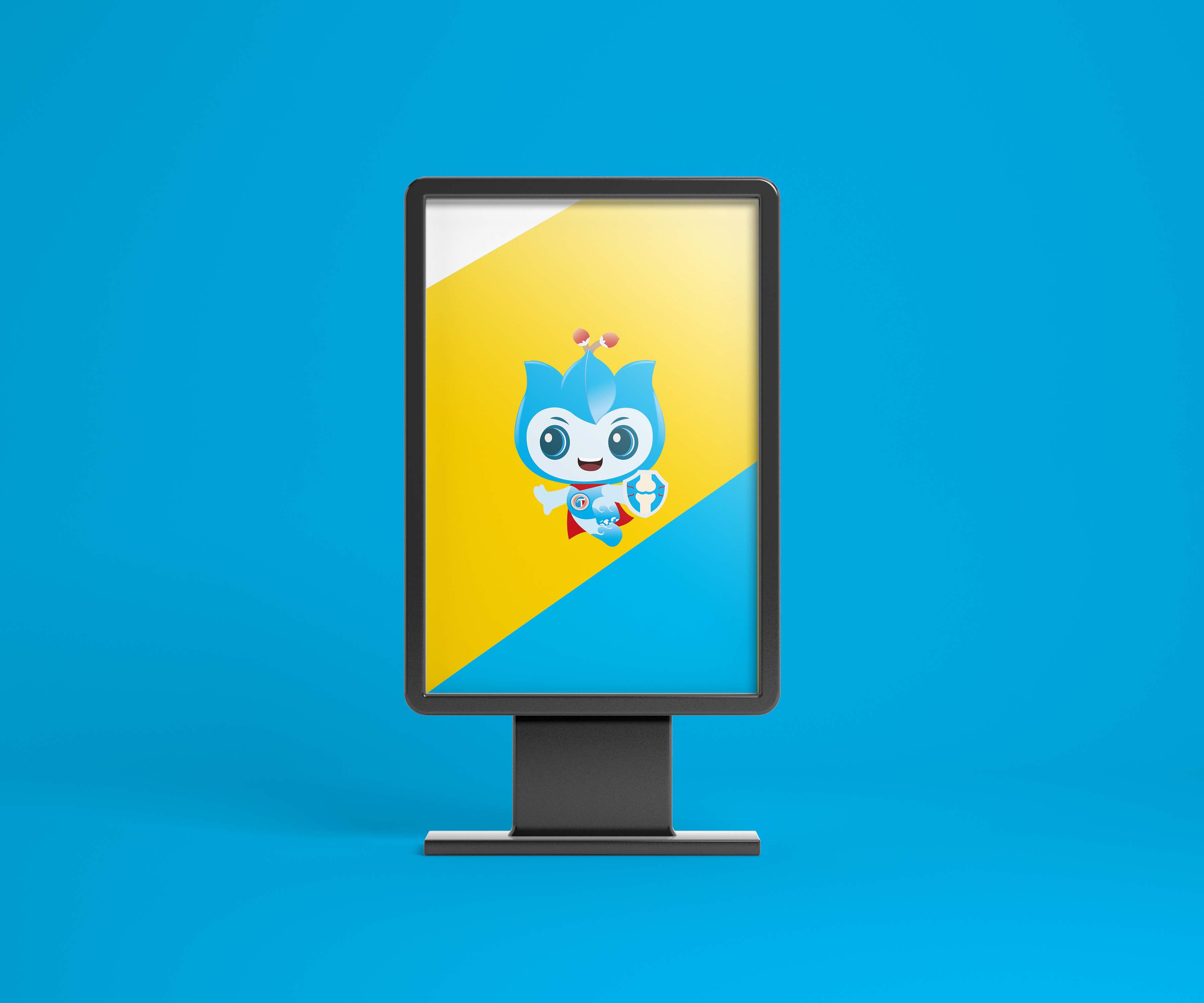 • 盾牌:關節形態錨定場景:IP胸前盾牌內嵌入抽象的關節圖形,精準錨定“關節不適”的適用場景。這一設計將“守護關節健康”的核心價值具象為可識別的視覺符號,形成強大的場景聯想。